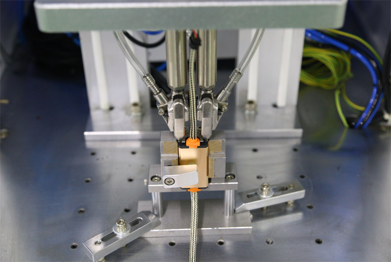 電源線鎖螺絲機這一方案選用了多頭自動鎖附的方式,一次可同時擰緊兩顆螺絲。因為需要擰螺絲的產(chǎn)品處于本體的中間部分,所以在設(shè)計夾具的時候也把前后兩端的位置預(yù)留出來,防止影響到產(chǎn)品鎖附時因放置不平整而出現(xiàn)鎖歪現(xiàn)象。采用了一出二的供料方式,一次輸送兩顆螺絲到指定位置。速度快不易卡釘。自動鎖螺絲機還可以直接放置在生產(chǎn)線旁邊,當(dāng)產(chǎn)品螺絲擰緊作業(yè)完成后,直接可放到流水線上,傳輸?shù)较乱粋€需要作業(yè)的工位,生產(chǎn)效率有效提升。